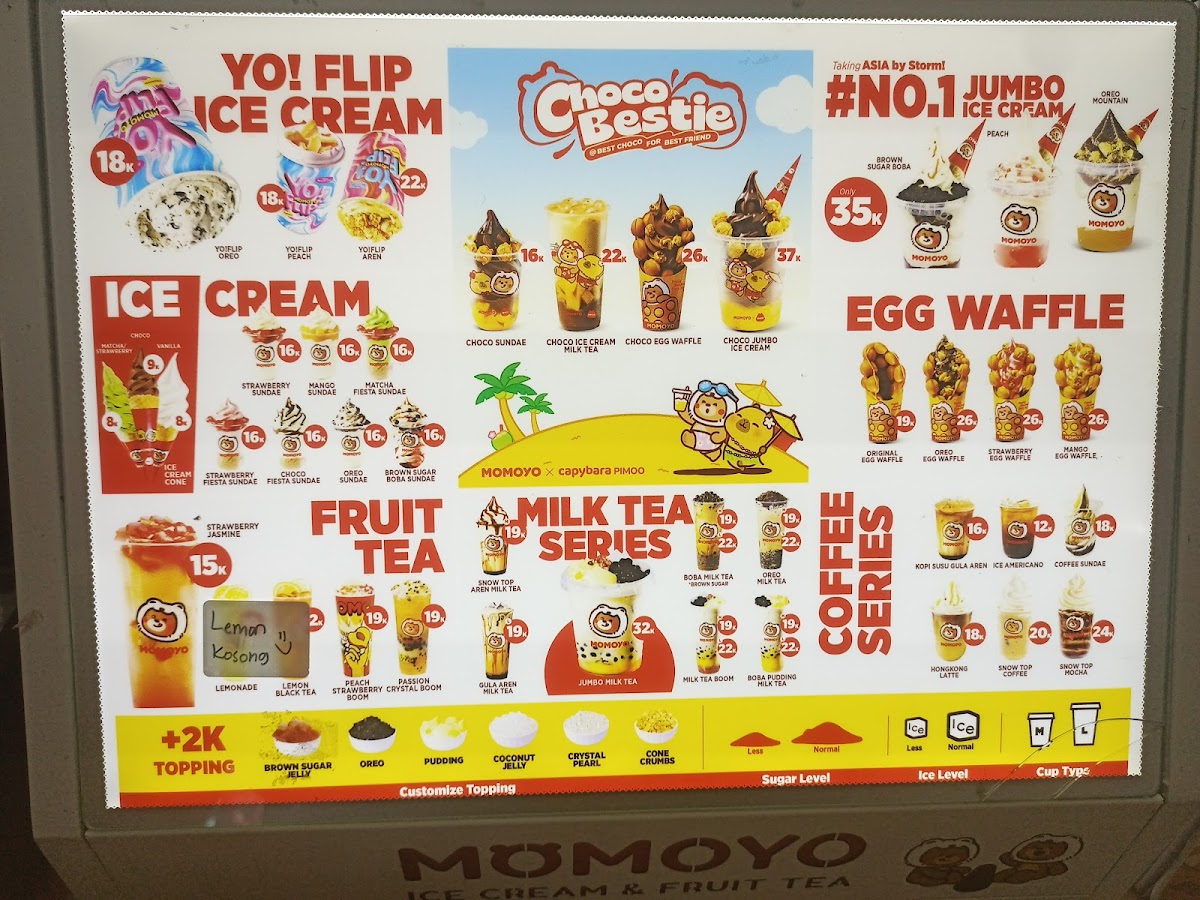 MOMOYO GAJAH MADA in Kota Padang offers a refreshing escape with its diverse and delightful ice cream menu. Located conveniently on Jl. Gaada, this ice cream shop shines not only for its rich and creamy flavors but also for its warm, attentive service. Customers rave about the wide variety of taste options, ensuring there’s something for everyone—from classic choices to inventive, tropical-inspired blends. The clean, spacious, and fragrant environment enhances the overall experience, making it an ideal spot to relax and savor cold treats.